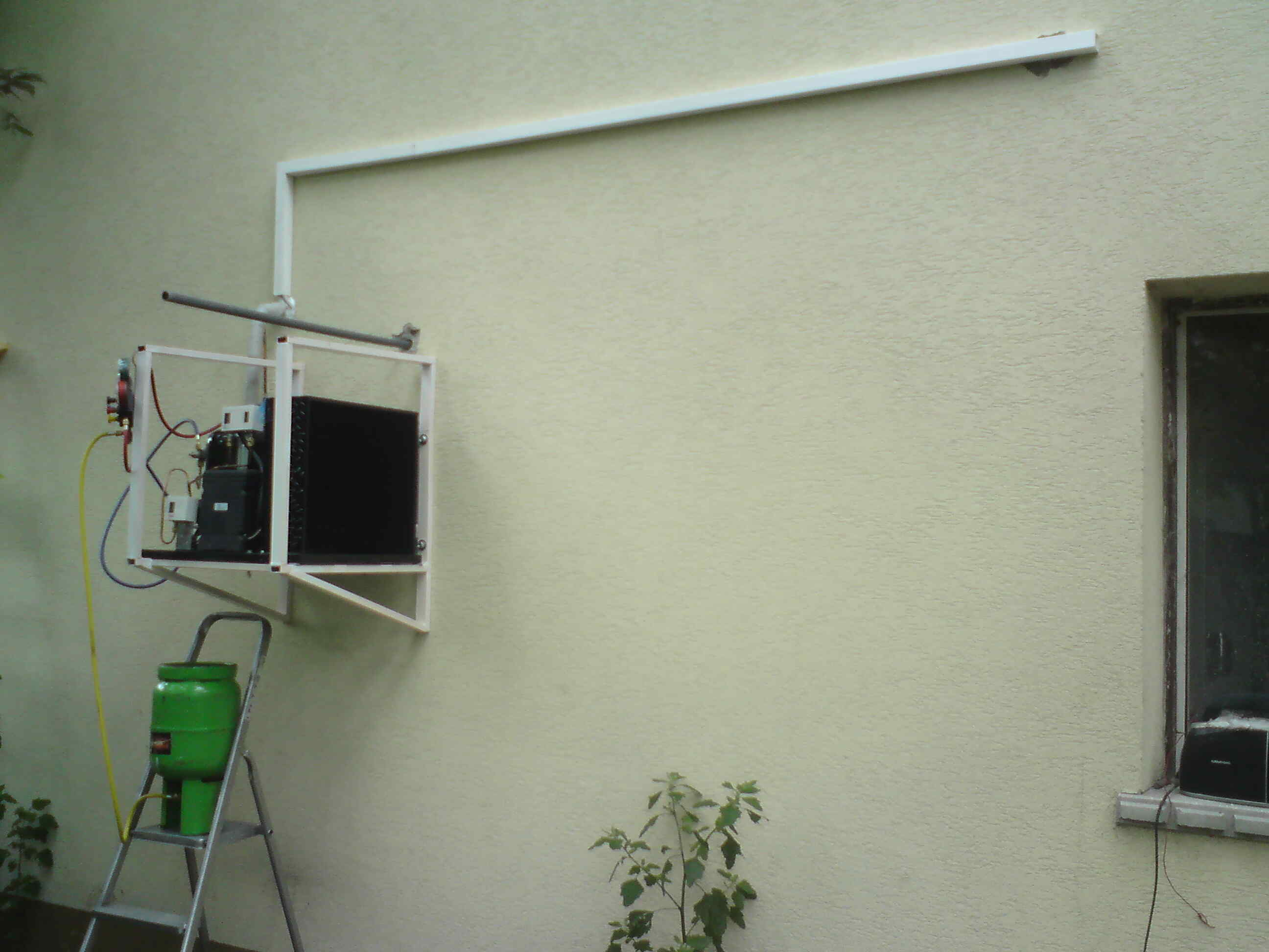 Megbízónk (2007-ben) maga alakította ki a hűtendő teret, 15cm szendvics panelből. Mi csak a gépészetet telepítettük, ami +2 fokon tudja tartani a vizes vödörben betárolt szegfűket, így sokáig nem nyílik ki, tovább marad piac képes! Az aggregát kifogástalanul működik a mai napig!